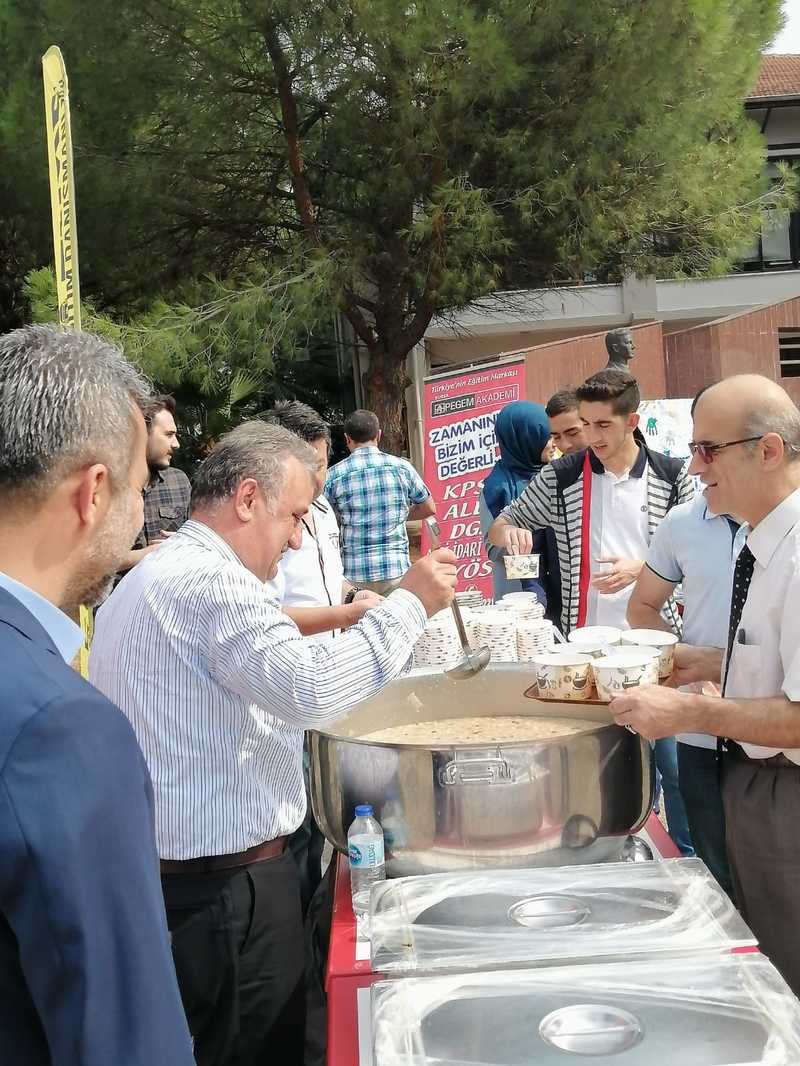 Uludağ Üniversitesi Eğitim ve İdari Bilimler Fakültesi'nde düzenlediğimiz aşure etkinliğimizde katılım sağlayan Eğitim Fakültesi Dekanı Sayın Prof.Dr.Salih ÇEPNİ hocamızın elinden aşure dağıtımı.